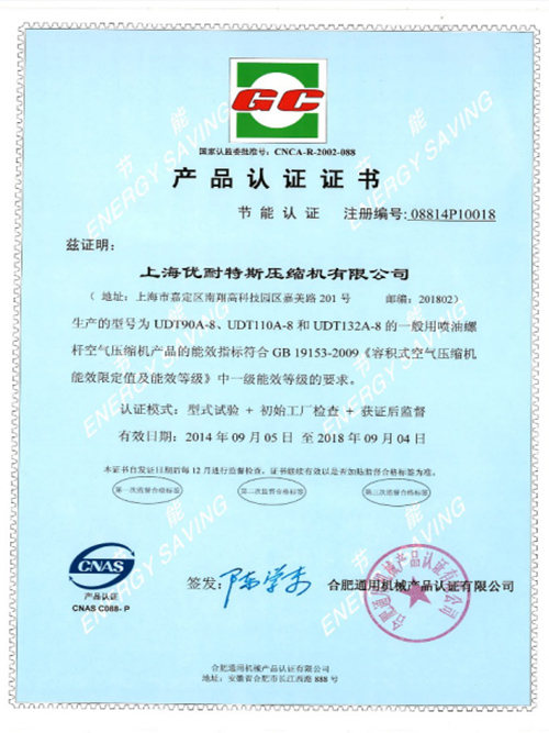 節(jié)能認證證書